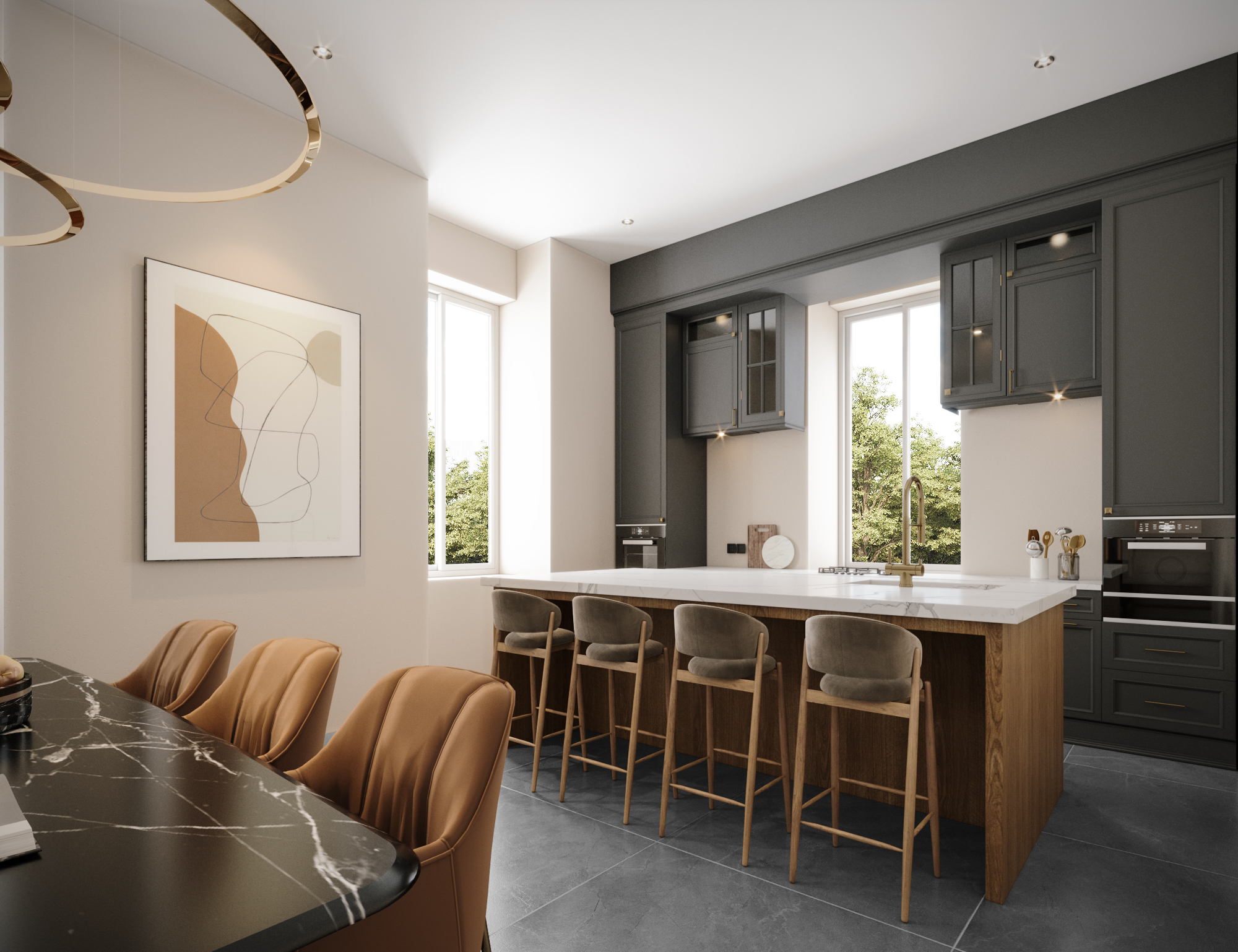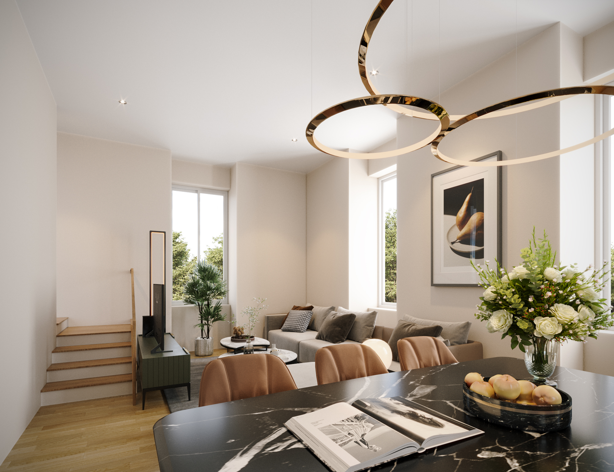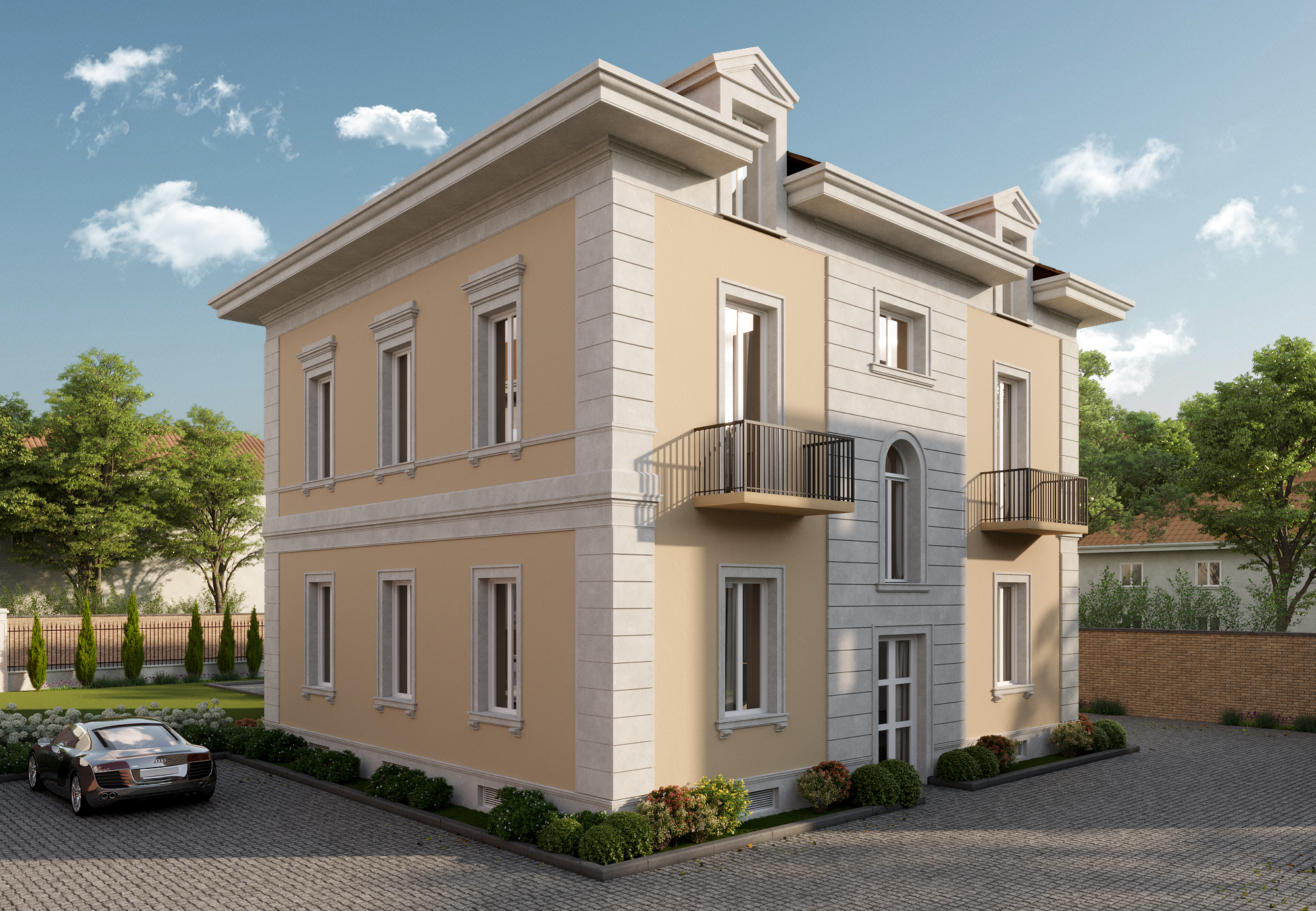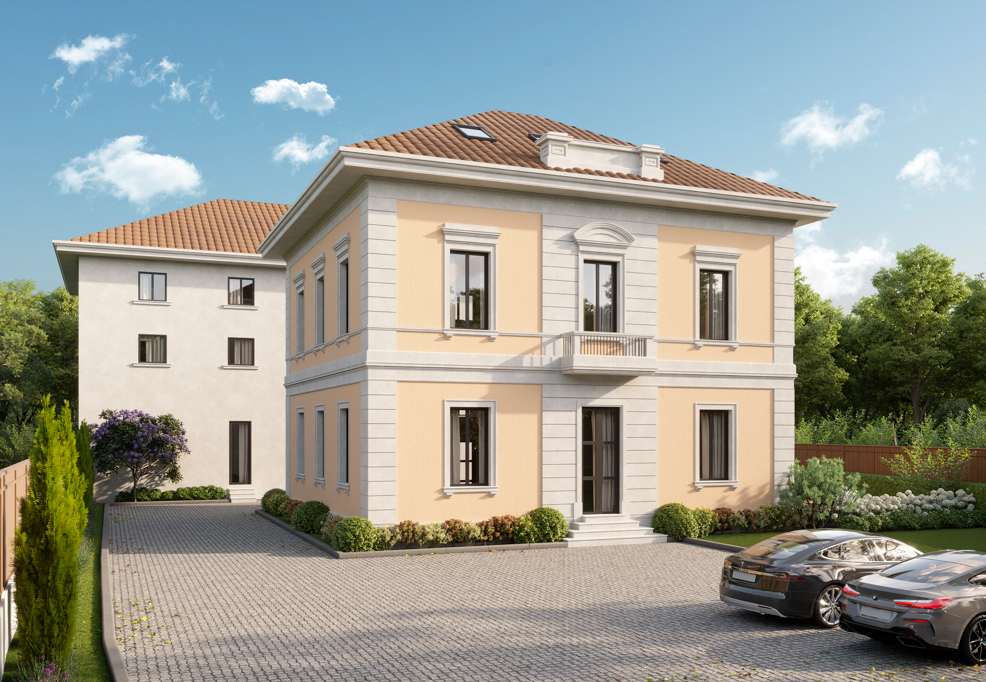 The entire building, originally constructed in the 1930s, has been fully rebuild internally. All structural elements – walls, floors, stairs and roof – are brand new. Modern systems including electrical wiring, plumbing and central heating have been completely reinstalled. Each unit is insulated to meet the highest A4 energy efficiency standard. Sustainable features include a heat pump for heating and hot water, photovoltaic roof panels and dedicated EV charging stations for each unit. Triple-glazed windows provide excellent thermal and sound insulation, while internal walls are soundproofed for maximum privacy. Set slightly back from the main street in a secluded, enclosed setting, the property offers added tranquility. Each duplex features a main living area on the first floor, with bedrooms in the attic illuminated by 17 roof windows, offering natural light and stunning night sky views. Each apartment includes a private parking space and garage in a newly constructed adjacent parking facility. A key focus of the project is the meticulous restoration of the building’s original façade, preserving its historic character.